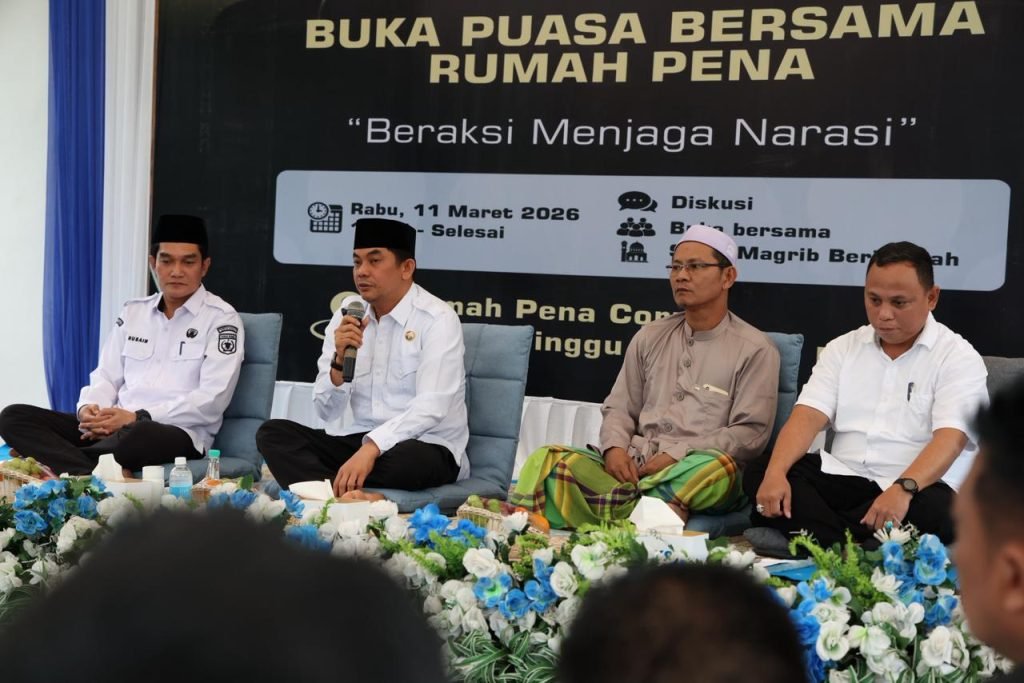 Rangkaian kegiatan juga diisi dengan diskusi literasi bertajuk *“Beraksi Menjaga Narasi”* yang dipandu oleh Puja Mandela sebagai moderator. Acara kemudian dilanjutkan dengan buka puasa bersama dan salat Magrib berjemaah.