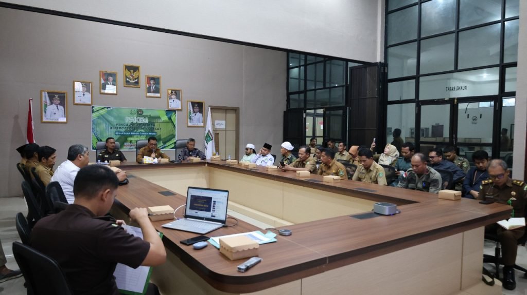 Rapat Koordinasi (Rakoor) Pengawasan Aliran Kepercayaan Masyarakat (PAKEM) Tahun 2025 digelar oleh Kejaksaan Negeri Kabupaten Tanah Bumbu, Selasa (9/12/2025). Kegiatan berlangsung di Aula Badan Kesatuan Bangsa dan Politik (Bakesbangpol), Gunung Tinggi, Batulicin.