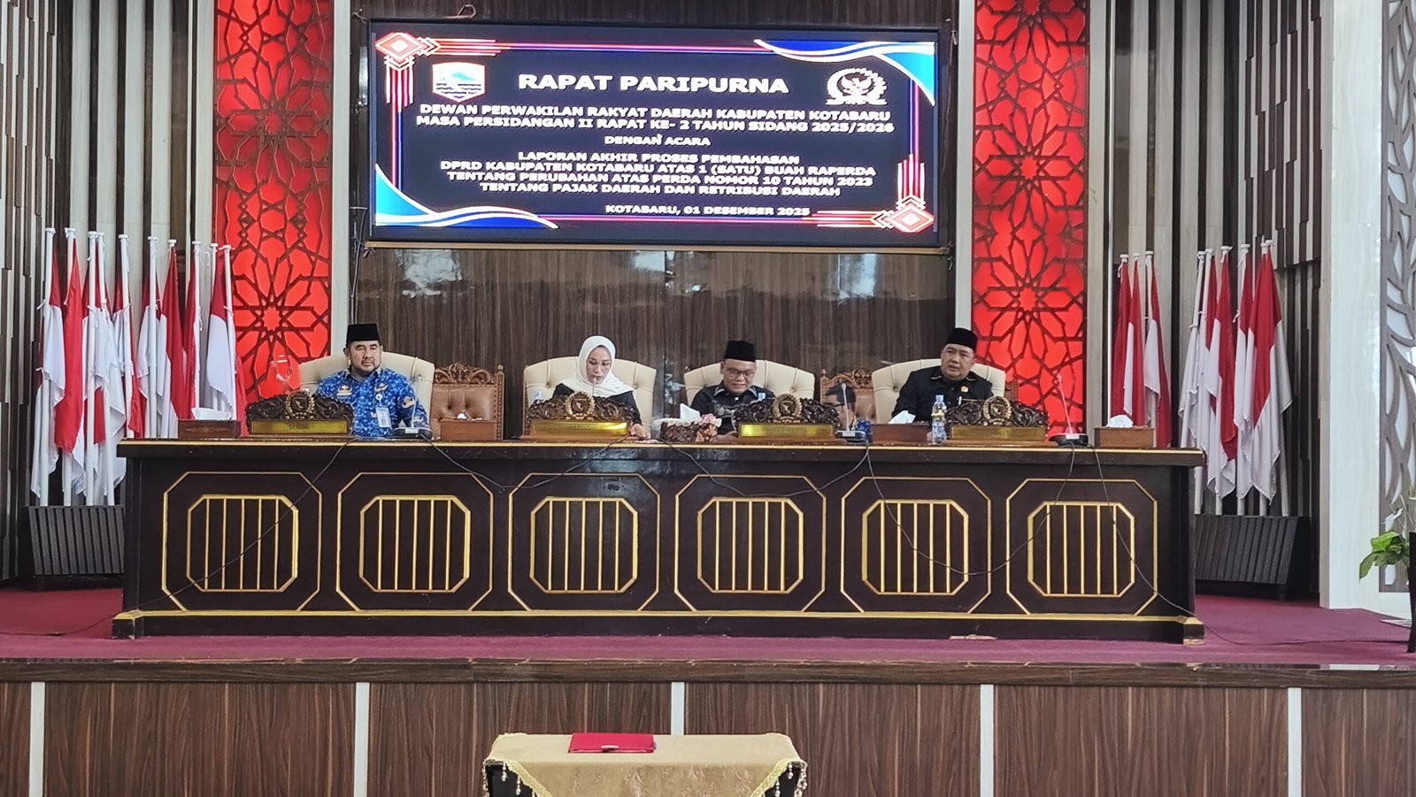 Pijarkalimantan.com, KOTABARU – Dewan Perwakilan Rakyat Daerah (DPRD) Kabupaten Kotabaru Gelar Rapat Paripurna dengan agenda mendengarkan Laporan Akhir Panitia Khusus (Pansus) II terkait pembahasan satu buah Rancangan Peraturan Daerah (Raperda) tentang Perubahan atas Peraturan Daerah Nomor 10 Tahun 2023 tentang Pajak Daerah dan Retribusi Daerah.