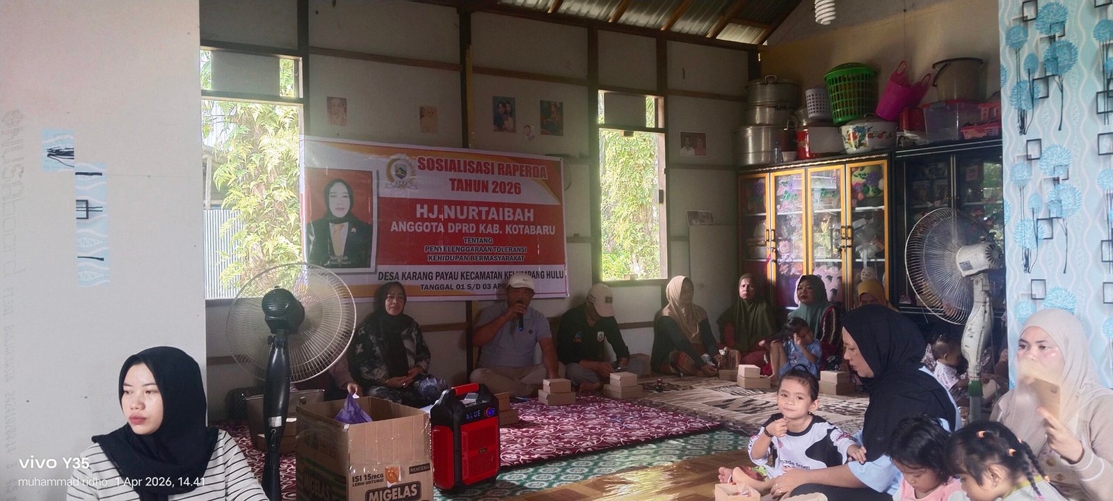 Pijarkalimantan.com, Kelumpang hulu – Anggota Dewan Perwakilan Rakyat Daerah (DPRD) Kabupaten Kotabaru, Hj. Nurtaibah melaksanakan kegiatan sosialisasi Rancangan Peraturan Daerah (Raperda) tentang Penyelenggaraan Toleransi Kehidupan Bermasyarakat sebagai upaya memperkuat kerukunan dan keharmonisan sosial di tengah masyarakat yang beragam, Rabu (01/04/26).