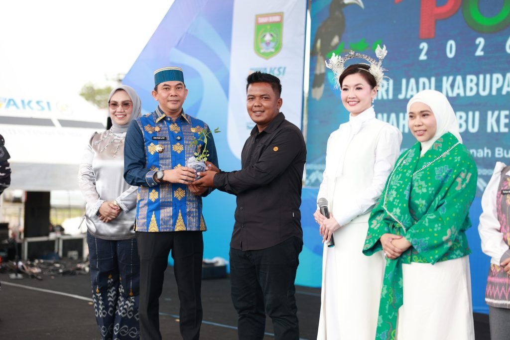Selain Bupati dan Asty Ananta, Ketua TP PKK Tanah Bumbu, Andi Irmayani Rudi Latif, juga turut menyerahkan bibit kepada perwakilan petani.
