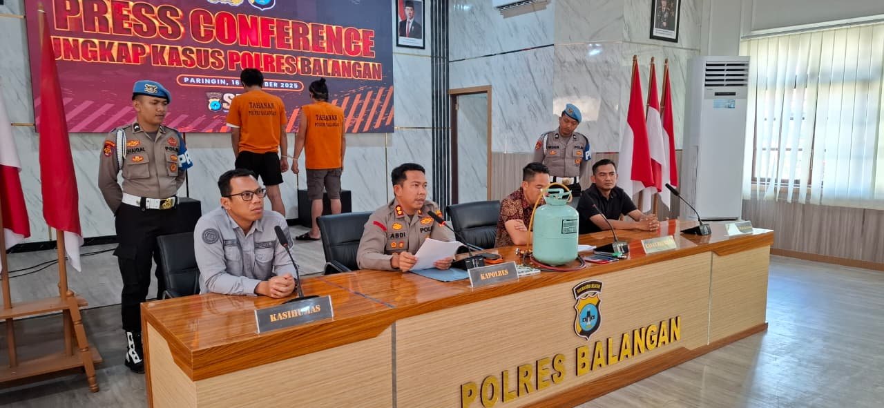 Kapolres Balangan AKBP Dr. Yulianor Abdi dalam konferensi pers di Mapolres Balangan, Rabu (16/10/25), mengungkapkan bahwa kedua tersangka masing-masing berinisial MA alias Iluk dan DY alias Idi. Mereka bekerja sama menjaring 43 korban dengan total kerugian mencapai Rp86 juta.