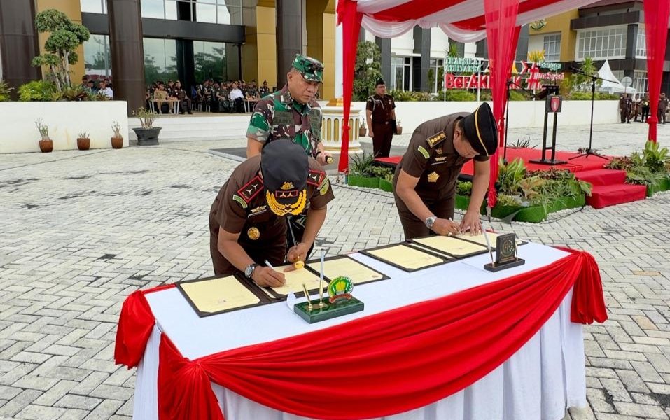 Dalam momen penuh khidmat itu, Kejati Kalimantan Selatan bersama Kejati Kalimantan Tengah dan Kodam XXII/Tambun Bungai menandatangani perjanjian kerja sama yang bertujuan memperkuat koordinasi kelembagaan, terutama dalam bidang penegakan hukum, perlindungan jaksa, serta peningkatan profesionalisme aparatur negara.