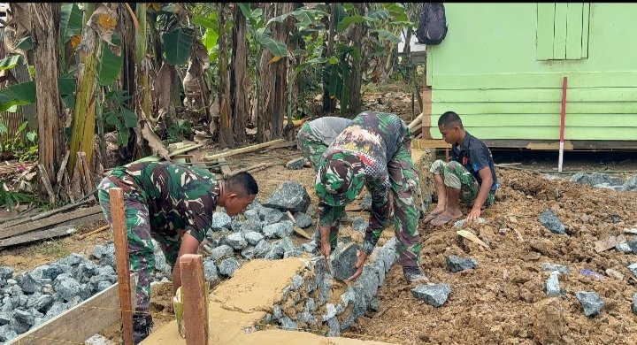 Pekerjaan pembangunan pondasi ini menjadi tahap awal proses rehabilitasi rumah warga yang sebelumnya dinilai tidak layak huni. Dengan semangat kebersamaan dan gotong royong, anggota Satgas TMMD bersama masyarakat setempat bekerja menyiapkan bahan bangunan serta melakukan pengecoran pondasi agar rumah memiliki struktur yang kuat, kokoh, dan tahan lama.