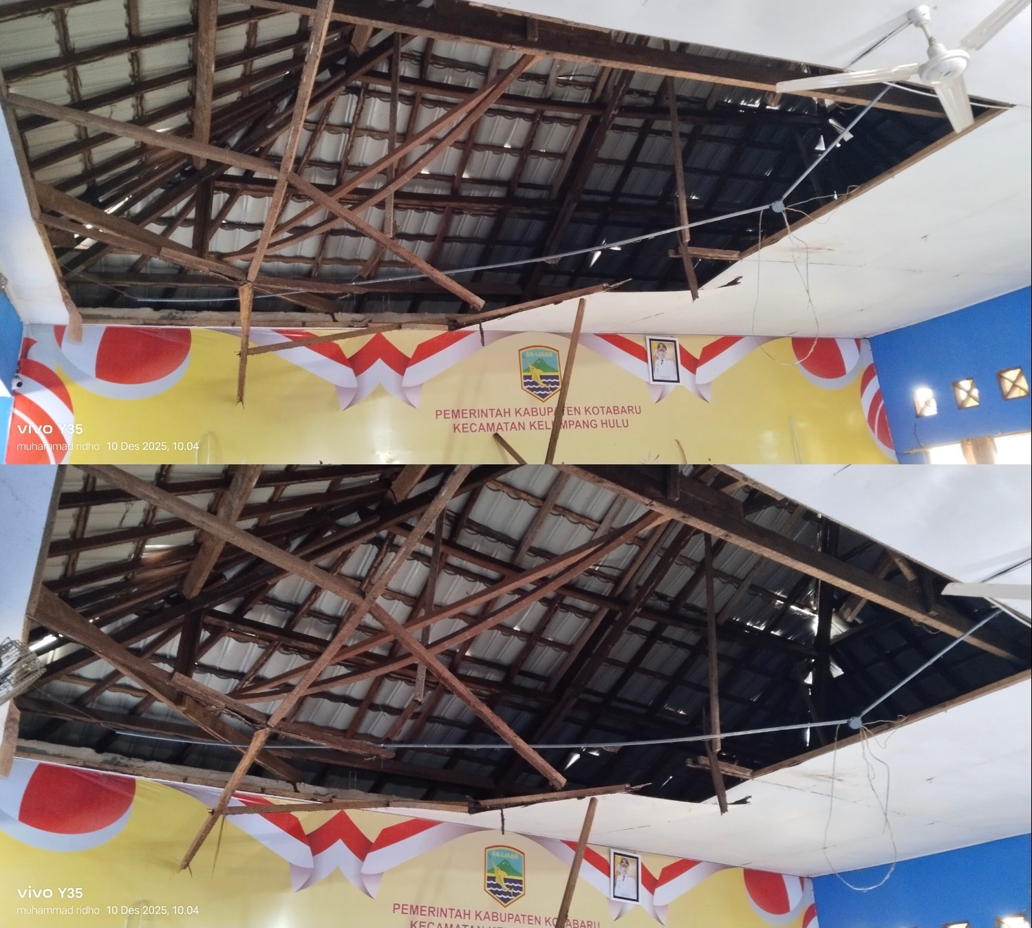 Pijarkalimantan.com,Sungai Kupang, 11-Desember 2025– Ruang rapat utama di Kantor Kecamatan Kelumpang Hulu mengalami kerusakan parah, yang berdampak langsung pada terganggunya sejumlah agenda rapat penting dan koordinasi pelayanan publik di wilayah tersebut. Kerusakan ini memerlukan tindakan perbaikan segera dari pihak berwenang.