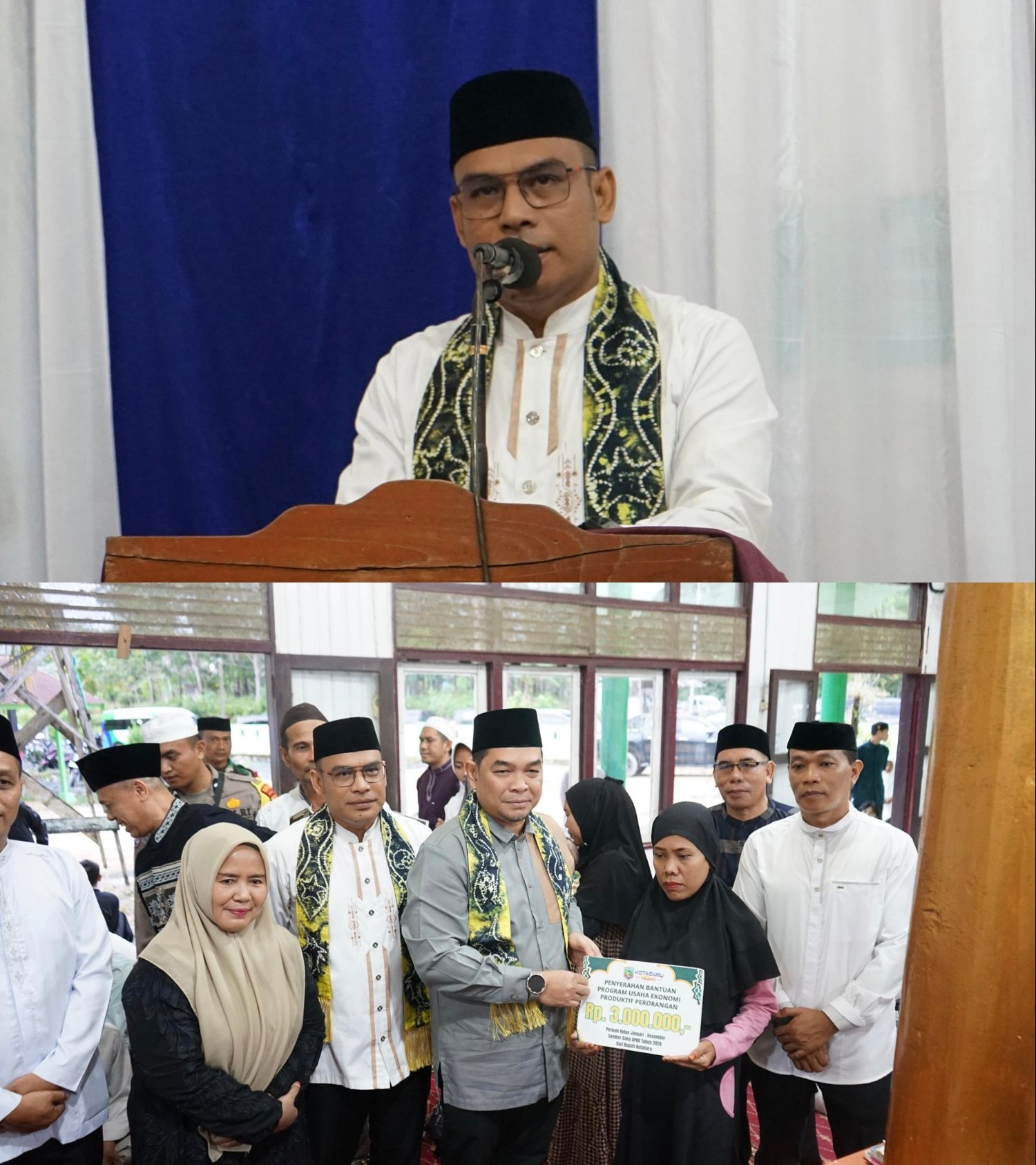 Dalam kesempatan itu, Wakil Bupati dan Sekretaris Daerah Kotabaru menyerahkan bantuan berupa insentif guru Taman Pendidikan Qur’an Riyadhul Ulum Desa Mekarpura dari bagian Kesra, bantuan usaha ekonomi produktif dari Dinas Sosial, kemudian bantuan Dinas Kesehatan dari Puskesmas Mekarpura berupa bingkisan untuk balita remaja putri dan ibu hamil, Dinas Perkim berupa rehab rumah serta bantuan dari PDAM Kotabaru menyerahkan sembako.