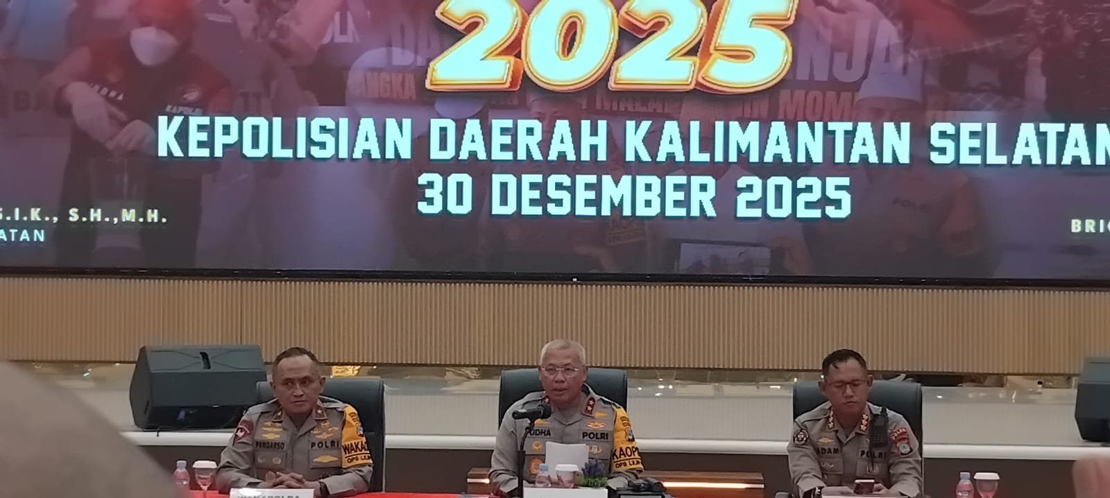 Banjarbaru, Selasa (30/12/2025) — Kepolisian Daerah Kalimantan Selatan (Polda Kalsel) menggelar Rilis Akhir Tahun 2025 di Mapolda Kalsel sebagai wujud transparansi dan akuntabilitas kinerja kepolisian kepada publik. Kegiatan ini dipimpin langsung oleh Kapolda Kalimantan Selatan Irjen Pol. Rosyanto Yudha Hermawan.