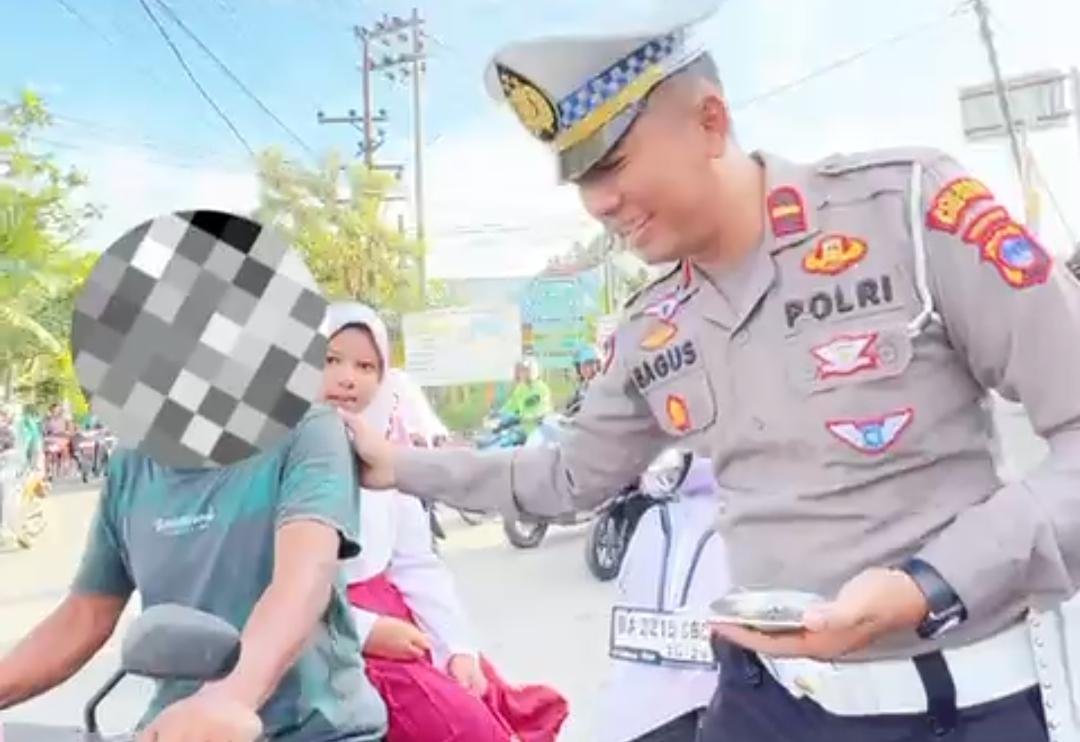 Langkah ini dilakukan sebagai bagian dari program “Polantas Menyapa”, sebuah inisiatif humanis yang bertujuan membangun kesadaran berkendara aman tanpa konfrontasi.