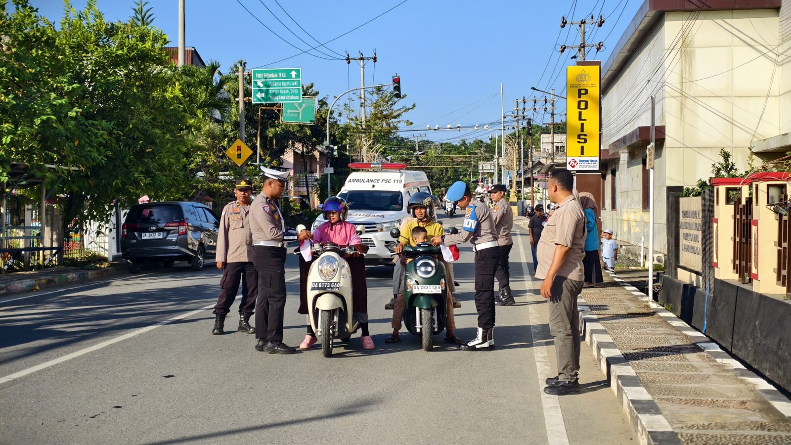 Tak hanya di pusat kota, seluruh 18 polsek di bawah Polres Kotabaru juga ikut membagikan bendera di wilayah masing-masing.