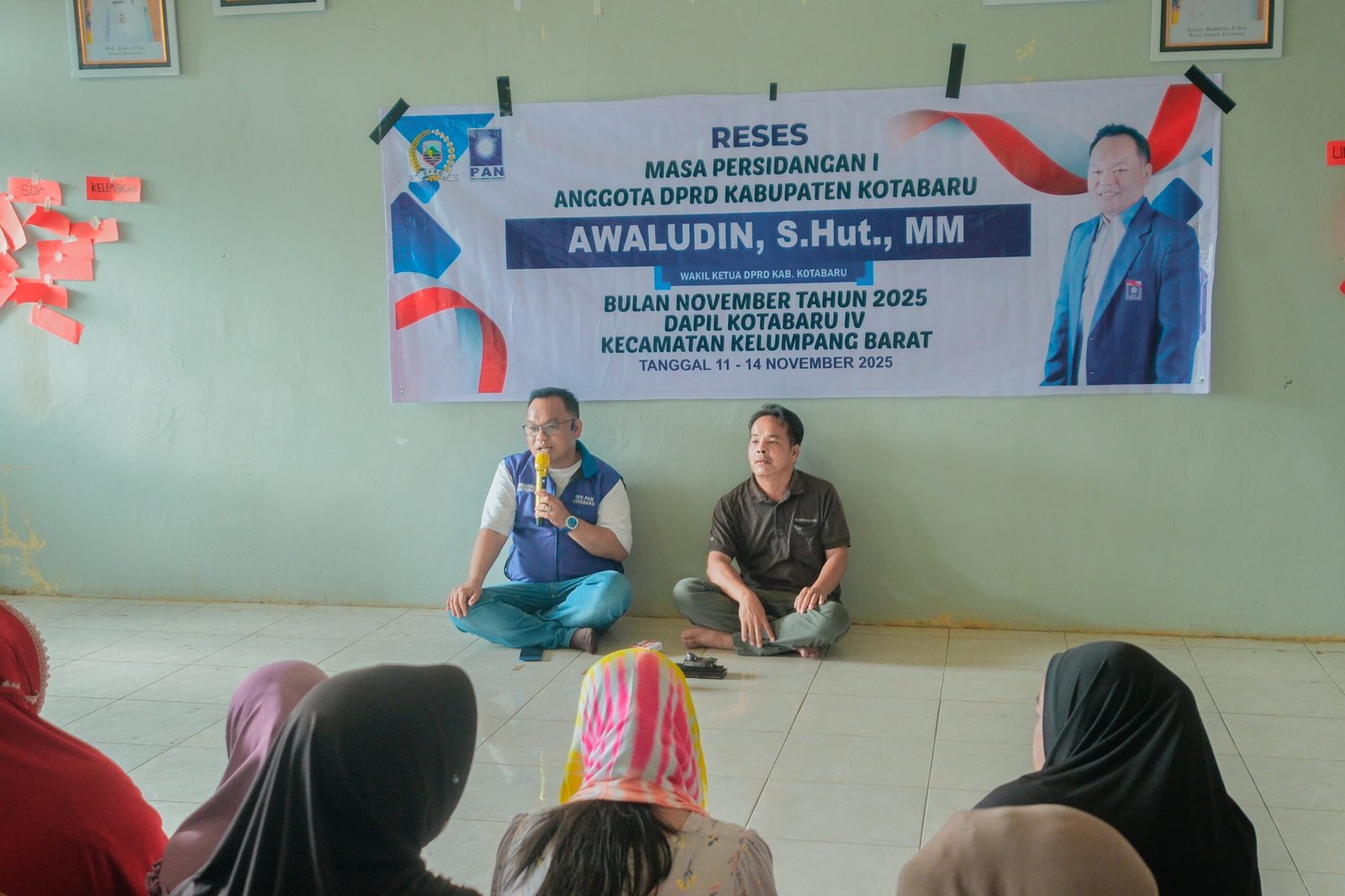 Pijarkalimantan.com, Kotabaru 11- November- 2025 – Anggota Dewan Perwakilan Rakyat Daerah (DPRD) Kabupaten Kotabaru dari Daerah Pemilihan (Dapil IV) Awaludin,S.Hut.,MM., telah selesai melaksanakan kegiatan reses masa sidang 1 yang berlangsung dari tanggal 11-14 November di berbagai titik di wilayah ddapilnya