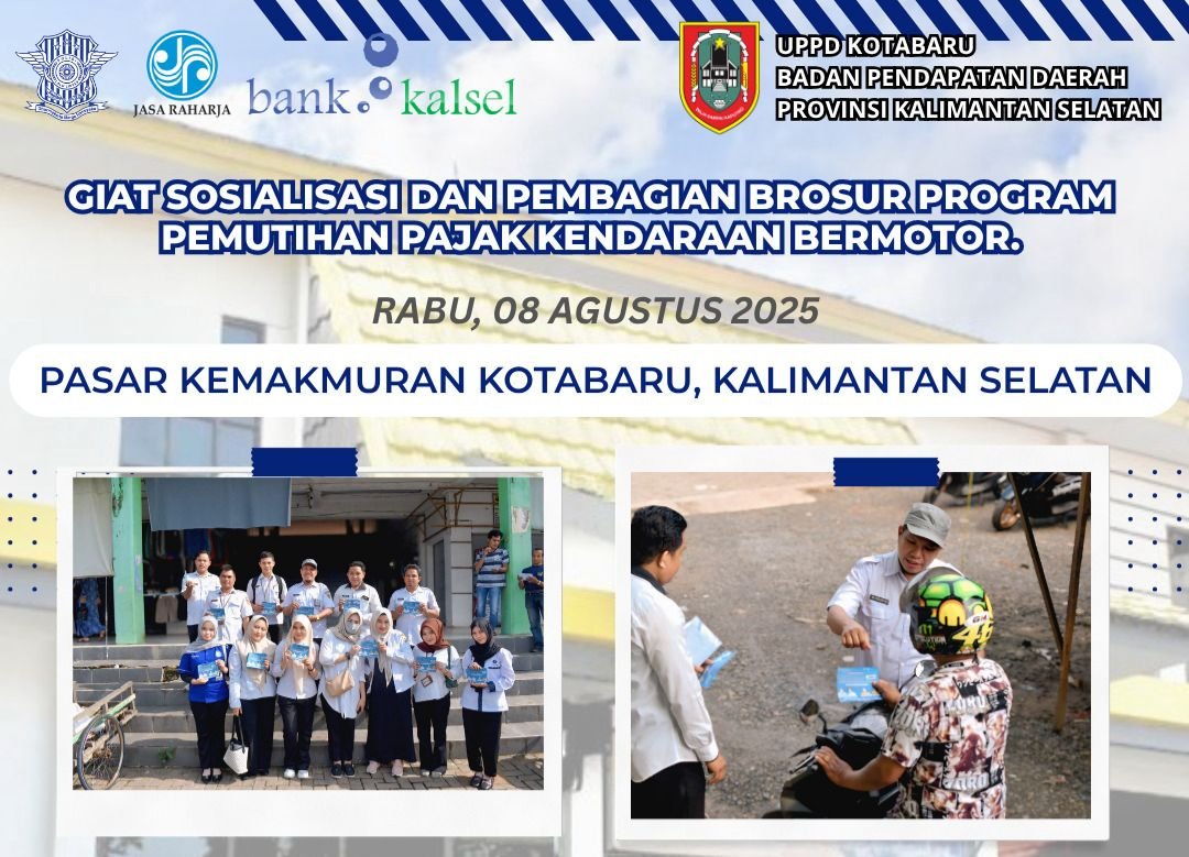 Pijarkalimantan.com, Kotabaru – Pemerintah Provinsi Kalimantan Selatan melalui UPPD Samsat Kabupaten Kotabaru terus berlakuan program pemutihan Pajak Kendaraan Bermotor (PKB) yang dimulai pada 04 Agustus hingga 31 Desember dan Gebyar Panutan Pajak Kendaraan Bermotor 2025. Program ini diharapkan dapat dimanfaatkan masyarakat dengan sebaik-baiknya.