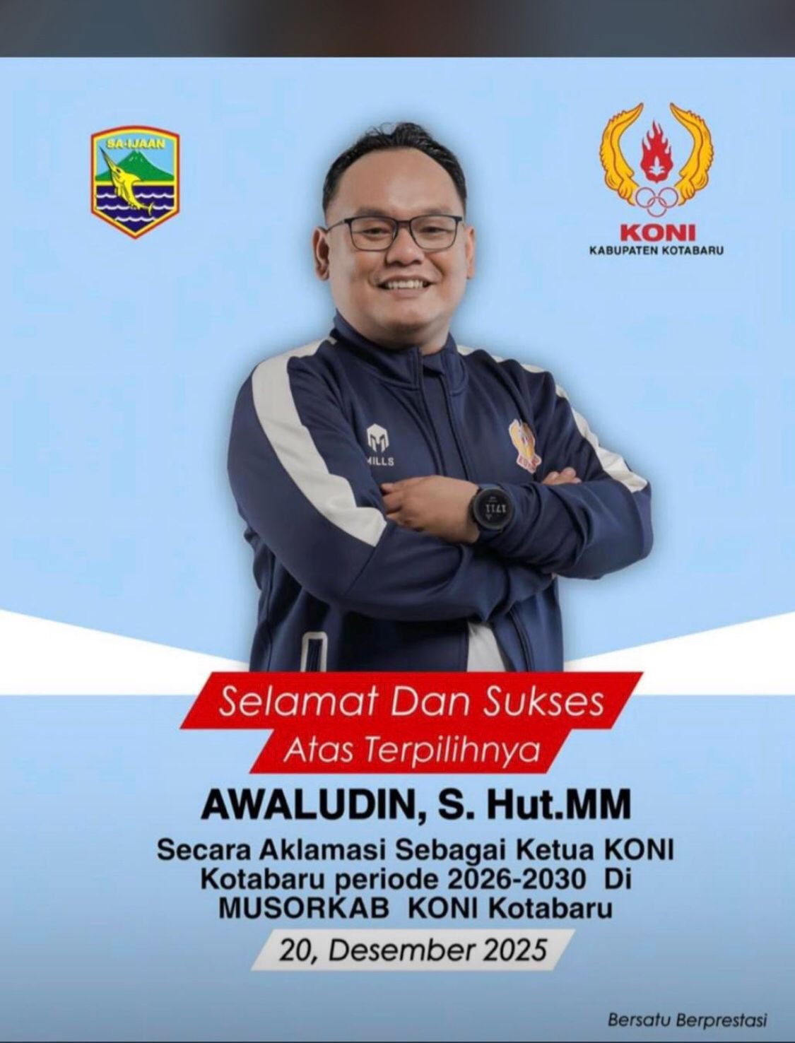 Beliau terpilih secara aklamasi setelah mendapatkan dukungan mayoritas dari Pengurus Cabang (Pengcab) olahraga yang memiliki hak suara di bawah naungan KONI Kotabaru.